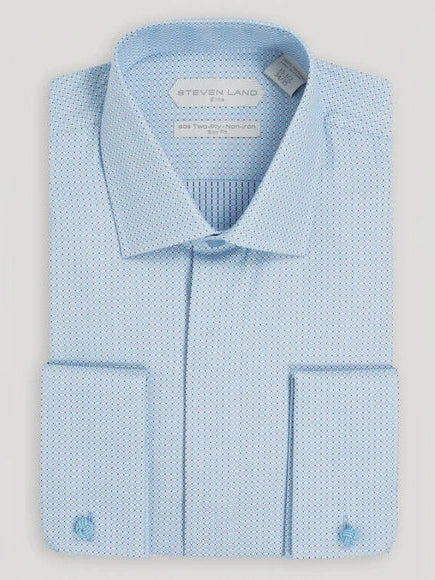 Steven Land Mens Blue Slim Fit 100% Cotton Spread Collar French Cuff Dress Shirt