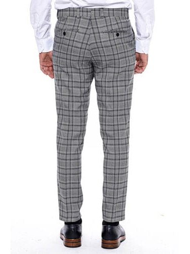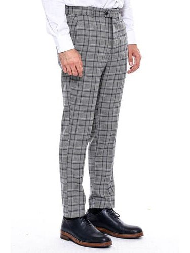 Wessi Mens Grey Plaid Slim Fit Dress Pants
